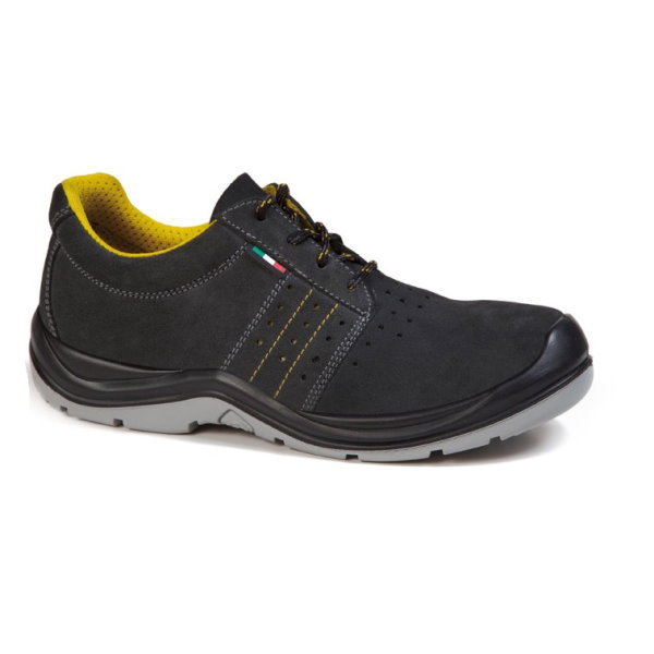 Sapato Exena Sicilia com Biqueira em composito e palmilha em Kevlar, com reforço adicional de poliuretano na biqueira.Totalmente ausente de partes metalicas.Certificada pela EN 345 S3. Produzido na Europa este sapato é feito com padroes de qualidade Europeus. É muito resistente e com uma durabilidade muito prolongada ao uso. É extremamente confortavel pois o facto de nao ter partes metalicas (podendo por isso ser usado em trabalhos electricos, por exemplo) permite ao utilizador um conforto extra.Certificado pela EN 345 S3.