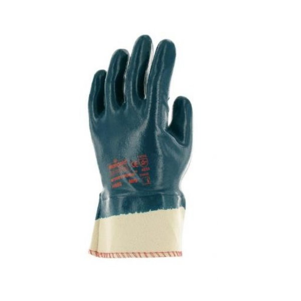 Luva de nitril com suporte em algodão jersey, com grande resistência para um trabalho duro e desgastante.
