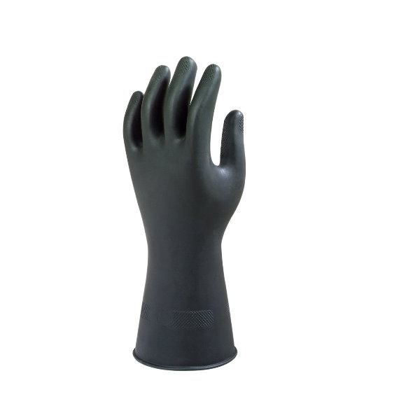 Luva em borracha de látex natural com forro flocado de algodão.
