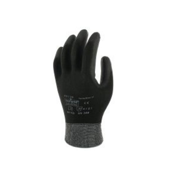 Luva de cinco dedos destinada à protecção frente a agressões mecânicas, confeccionada numa única peça de nylon preto.
